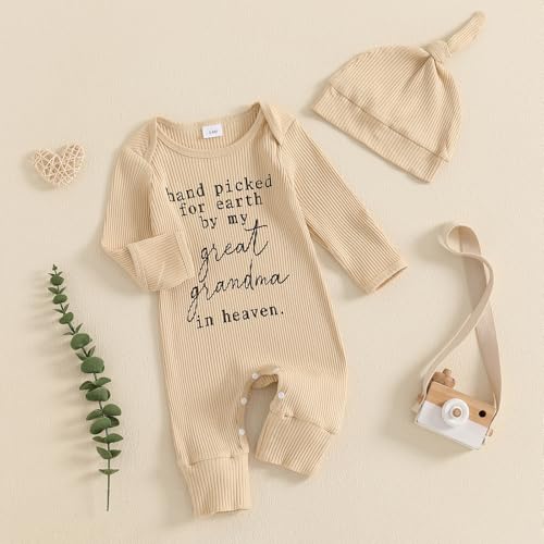 YOKJZJD Hand Picked For Earth By My Great Grandpa Grandma In Heaven Newborn Baby Boy Girl Fall Clothes Romper Jumpsuit +Hat 1