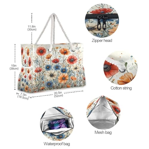 Elegant Wildflowers Beach Bag with Top Zipper Closure, Waterproof Pool Bag, Large Beach Tote for Women#588 7