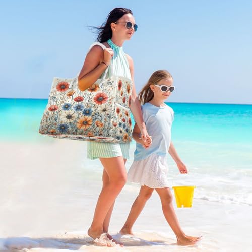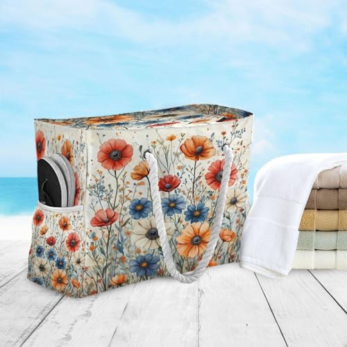 popular ! Elegant Wildflowers Beach Bag with Top Zipper Closure, Waterproof Pool Bag, Large Beach Tote for Women#588
