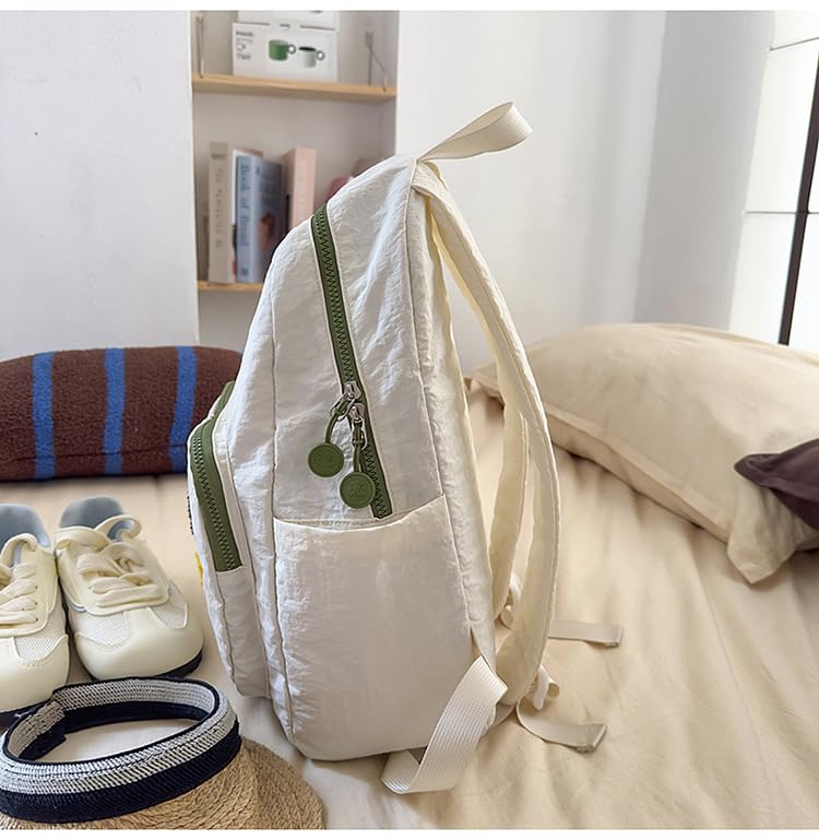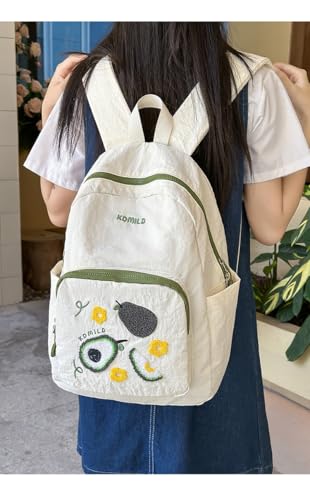 Cute Backpack Kawaii Shoulder Bag (Fruit Patch) – Casual Daypack easy trendy Travel Bag Y2k Aesthetic Bookbag (White)