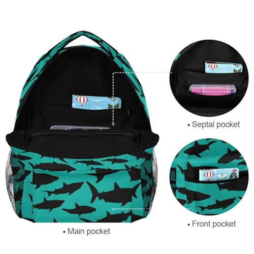 Black Shark Silhouette Blue Backpack for School Boys Girls Adults Kids Bookbag Laptop Bag 18L 7