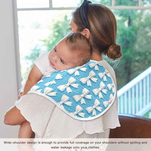 White Bows Baby Burp Cloths for Boys and Girls, Soft Muslin Spit Up Towels, 22"x11" Newborn Essentials for Feeding and Drooling, 1 Pack 5