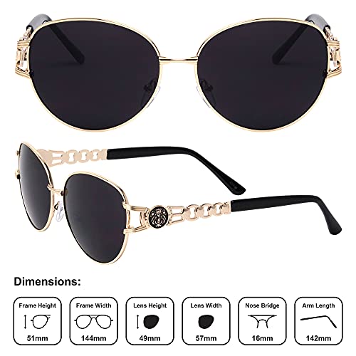 popular ! Kleo Dynasty - Metal Chain Temple Cut Out Side Coin Lion Head Medallion Oval Hip Hop Sunglasses