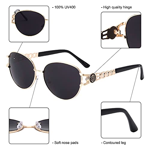 Kleo Dynasty - Metal Chain Temple Cut Out Side Coin Lion Head Medallion Oval Hip Hop Sunglasses 4