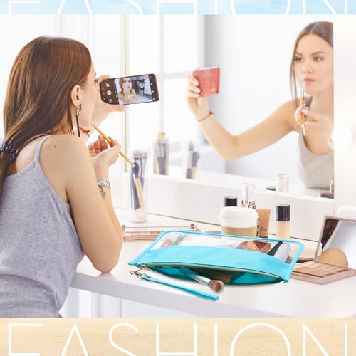 Sanwuta 3 Pcs Clear Zipper Pouches - Nylon Makeup Bags Cosmetic Travel Toiletry with Zipper, Preppy PVC Flat Pouch for Women Girls(Pink, Green, Blue)