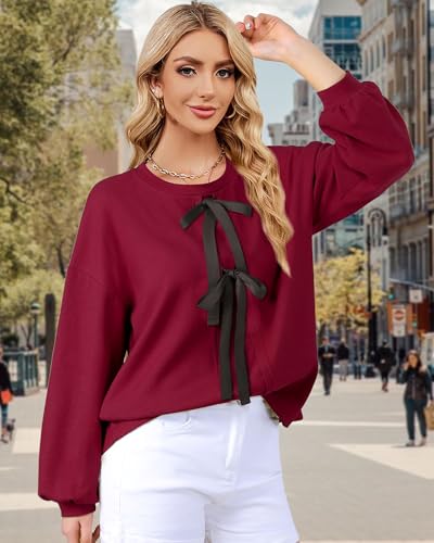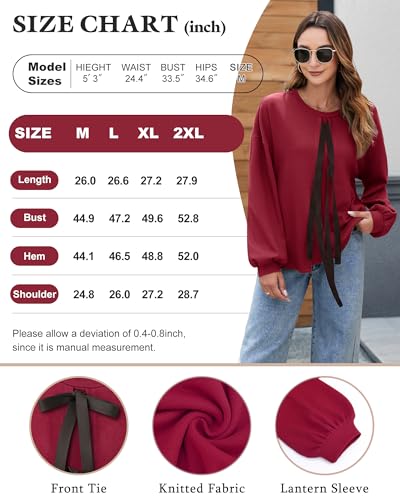 • exceptional Design: long sleeve shirts,Tie front sweaters,lantern sleeve comfy tunic tops, crewneck sweatshirt loose fit, lightweight cozy sweater tops, fall outfits for women 2025, dressy casual winter clothes. The a-line patchwork front and the hem makes it straightforward to show your unique personal fashion charm, and hide belly well. Also, the two ties can be adjustable freely to any shape such as bow, floral, etc, and it is suitable for both women and teen girls.