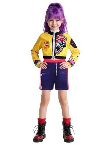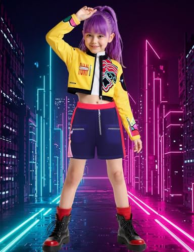 • The Ultimate 3-Piece Fashion Set: Unleash her inner fashionista with this complete 3-piece pop singer costume set, featuring a separate and sleek cropped jacket, a mock neck top, and cool athletic-style shorts