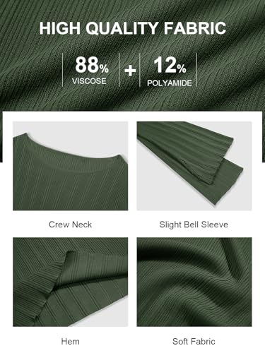 Fabric type: 88% Viscose, 12% NylonCare instructions: Machine WashOrigin: ImportedClosure type: Pull OnMaterial: Made of soft and skin-friendly exclusive knit fabric for ultimate comfort, full of elasticity. Simple and trendy design for a standout style in 2025Feature: Bell sleeve, slim fit, solid color, with a crew neck for a simple basic style. Flared sleeve design adding a touch of elegant femininity to this simple sweater. Due to the high elasticity of the fabric, it can be worn as off one shoulder topsMatch: Available in a variety of colors, it can be easily paired with your favorite jeans, skirts for a fashionable look. Also, you can dress up with your coat and jacket in winter. A great basic pullover sweater!Style: This long sleeve top is a versatile piece for both casual and dressy occasions. A must-have for your fall winter wardrobe. Suitable for casual wear, home, date, party, school, office and so onNotes: We recommend washing similar colors together for best results. Please refer to the size chart provided in the product images for accurate sizing information Perfect for everyday use. first-class materials and excellent craftsmanship ensure long-lasting durability.