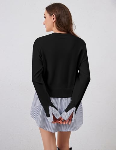 MISSACTIVER Women Slit Crew Neck Patchwork Sweater Asymmetrical Hem Shirt Top 2 in 1 Buttons Down Pullover Knit Sweater