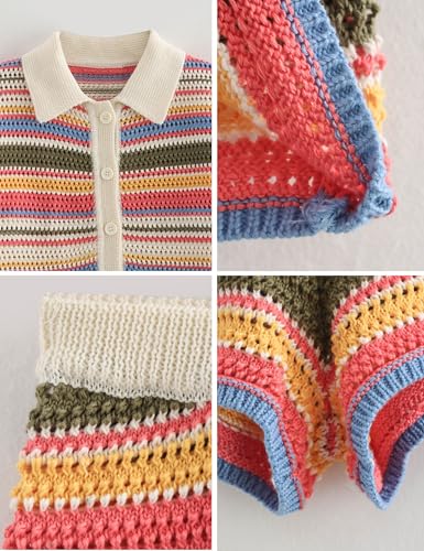 Why Choose Chevara Women’s Crochet Short Sets Stripe Button Down Cardigan with Shorts 2 Piece Knit Outfits?