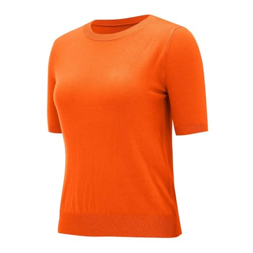 Short Sleeve Sweater Tops for Women Cute Lightweight Crew Neck T Shirts Plain Relaxed Fit Business Casual Tops