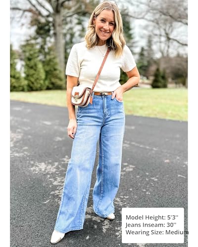 • Wide leg jeans Inseam - 30''. This pair of high waisted jeans for women has a high rise waistband to create a flattering silhouette by accentuating the waist and elongating the legs.