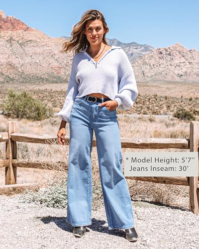 GRAPENT Wide Leg Jeans for Women Trendy High Waisted Stretchy Denim Pants 90s Baggy Jeans Trouser Jeans with Pockets 6