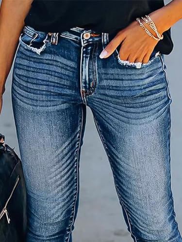 Flamingals Skinny Leg Jeans for Women Mid Waist Casual Wash Raw Hem Stretchy Denim Jeans 4