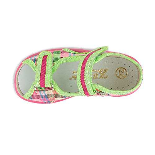Oliwia 2083 Pink Green Glow Checkerd Hook-and-Loop Toddler Girls' Natural Canvas Sandal 5