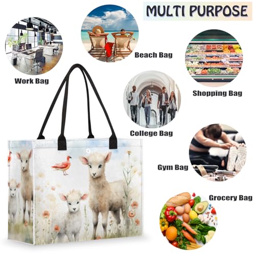 Cute Sheep Flower Tote Bag for Women Large Beach Bag Reusable Tote Bags for Work Travel Beach Shopping