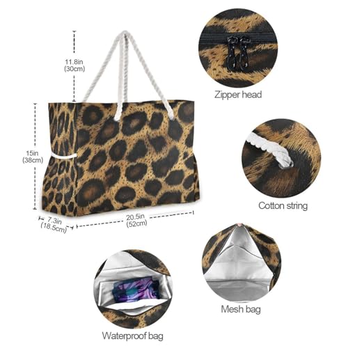 Leopard Print (2) Beach Bag & Travel Tote Bag Large Sandproof with Zipper Closure, Wet Pouch for Swim Gym Travel, Lightweight Foldable Outdoor Bag 4