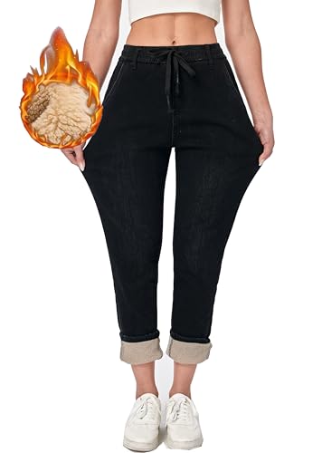• Women's Elastic Waist Jeans Stretch Drawstring Ankle Length Tapered Leg Jeans Boyfriend Pants for Winter Cold Weather Jeans Wear Trendy High Waisted Trousers Stretchy Baggy Jeans