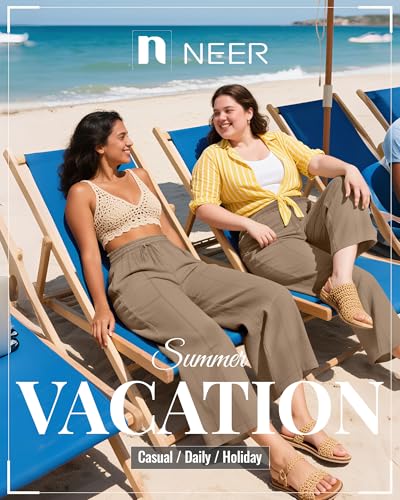 popular ! Neer Women's Plus Size Linen Cropped Pants, Wide Leg High Waist Capri Pants Summer Casual Beach Trousers with Pockets