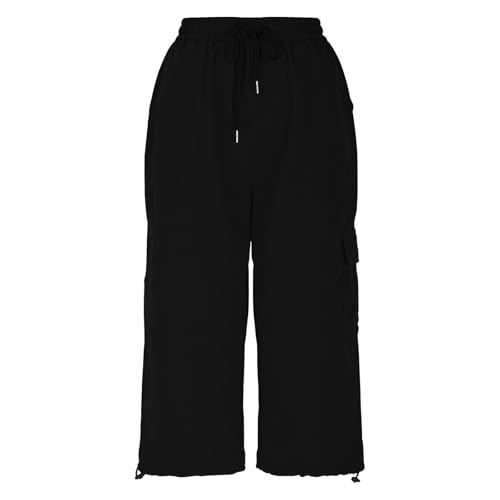 Plus Size Capris for Women 2025 Fashion Elastic Waist Drawstring Baggy Cargo Pants Causal Loose Fit Cropped Trouser