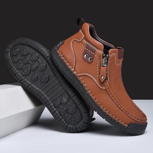 Sole material: Ethylene Vinyl AcetateShaft height: AnkleShaft circumference: 50 CentimetersOuter material: LeatherHandcrafted With Premium Leather: Meticulously hand-stitched using high-grade leather for exceptional durability, rich texture, and timeless craftsmanshipDouble Closure For Easy & Secure Fit: Side zipper with adjustable strap allows quick on/off and a snug, customizable fit that stays secure all dayLightweight, Non-Slip Rubber Outsole: Flexible yet rugged rubber soles with excellent grip keep you steady on wet or uneven surfaces—safe and secure with every stepWide Toe Design, Say Goodbye To Oppression: The wide toe design frees your feet from pressure and discomfort. Experience ultimate comfort with no constraints, even during long hours of wearBreathable & Supportive Construction: The first young shoes men collection features advanced airflow technology paired with arch support that adapts to your movement Perfect for everyday use. supreme materials and excellent craftsmanship ensure long-lasting durability.