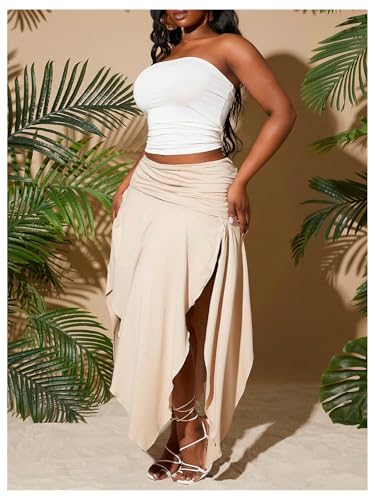Verdusa Women's Western Boho Ruched High Split Skirt Asymmetrical Maxi Vacation Skirts 2