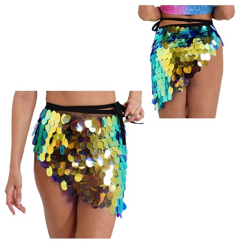 Lejafay Women Shiny Sequin Skirt Hip Scarf Belly Dance Skirt Package Hip Mini Skirts Party Dresses