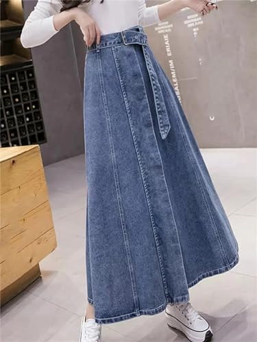 Women Spring Summer Long Denim Skirt Patchwork Single Breasted High Waist Skirt Loose Jeans Skirt