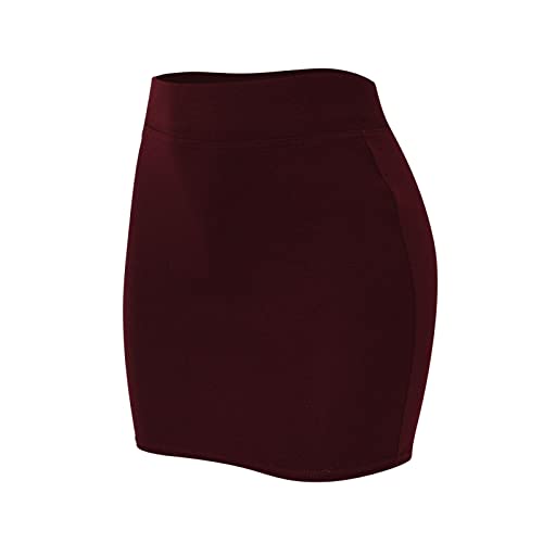 YOLAI Women Solid Skater Skirt Elastic Waist Slim Wrap-Around Mini Short Skirts Pencil Skirt 5