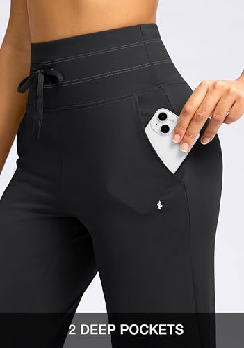 • 4" HIGH WAIST WITH DRAWSTRING- The stretchy, wide waistband are tight enough to stay up with a feeling of tummy control. Womens yoga sweatpants with adjustable drawstring helps you to move with no readjustments during yoga.