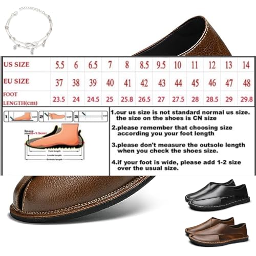 Sole material: Synthetic RubberClosure type: Pull-OnWater resistance level: Waterproof【Material】: This slip-on flat sandal is made of breathable soft cowhide with a hollow design, Soft and skin-friendly, And the genuine leather upper and upper vents keep your feet snug all day long. Soft insoles relieve foot fatigue【Anti-Slip Rubber Sole】: The sole of this slip-on loafer sandal is made of soft rubber material, Which is shock-absorbing and wear-resistant, With a tough textured design that will not slip in areas when it rains and is wet, Providing excellent cushioning and Comfort【Fashionable Design】: Side-opening style feet provide better comfort. The hand-stitched stitching of the shoes is durable and not easy to come off, Which increases the firmness of the shoes. Low-key flat slip-on sandals,Take the simple route【Color】: This set of flat sandals are available in two colors, you can choose black for daily wear or work wear, Simple and fashionable. Brown is easy to match with casual clothes and makes you young and energetic【Occasions】: Suitable for different occasions: Work, Parties, Outdoor, City, Dress up, Shopping, Dog walking, Driving, Hiking, Etc. We offer you the best walking experience with a variety of outdoor or indoor activities Perfect for everyday use. excellent materials and excellent craftsmanship ensure long-lasting durability.