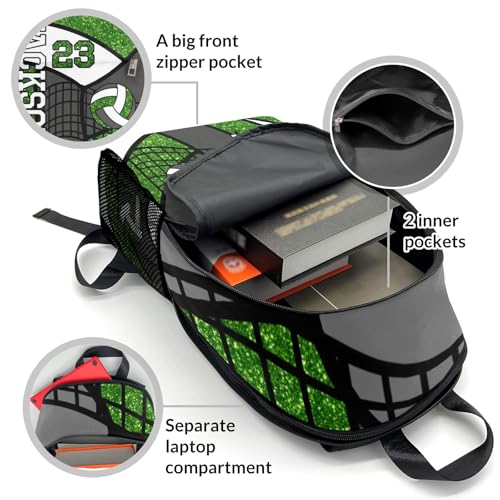 popular ! Personalized Sport Volleyball Glitter Green whole-Purpose Adult Backpack with swift Access Mesh Side Pockets & Modular Interior for Efficient Daily Carry, 11.8" (L) x 5.5" (W) x 17.7" (H)