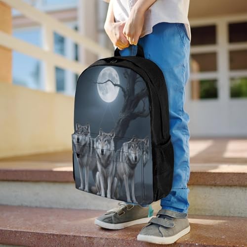 Supdreamc Men Women Polyester Three Wolves Moonlight Dead Trees Art Daypack Big Capacity Shoulder Bag With Smooth Zippers for Hiking Work Walking Cycling 3