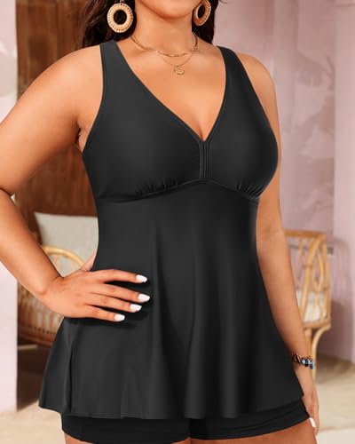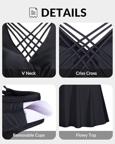 • Plus Size Tankini Top: This black swim top features a v neckline and a crisscross strappy back, providing a new-age and flattering look. The padded bras offer excellent support, ensuring a comfortable and confident fit.