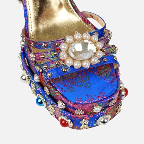 • 💃【Fashion Design】A rhinestone adorned plaque sits on the footband while textured beads and gemstones pattern the body. These peep toe block high heels sandals embellished with flower pattern highlight your outlooking and help you stand out in the crowd