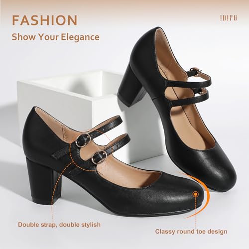 IDIFU Women's Dress Shoes for Women Pumps Mary Jane Heels Low Block Round Closed Toe Wedding Office Work