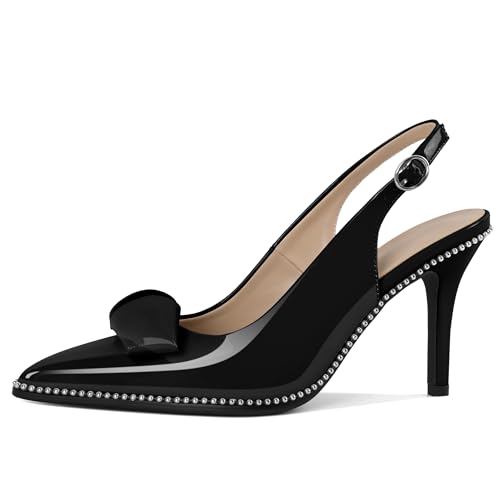 Sole material: RubberOuter material: LeatherClosure type: Buckle【Effortless Elegance】Heel measures approximately 3 inches. Our Glossy Slingback Heels with sturdy slender stiletto heels provide you a comfortable and gentle fit, offering every step stable and elegant.【Distinctive Slingback Design】Experience comfort and style with the distinctive backless and slingback design, allowing you to effortlessly slip in and out of these heels.【Chic Pointed Toe Design】Embrace a modern twist with the pointed toe, adding a touch of sophistication to your look.【HEART SHAPED DIAMOND】Elevate your shoe game with the eye-catching heart shaped diamond decoration, adding a luxurious detail to your ensemble.【Versatile Fashion Statement】Whether it's a formal event or a night out, these stiletto slingback high heels are the perfect choice to elevate your style. Zamikoo pumps shoes women put a perfect finish on any outfit for Wedding, Date, Cocktail, Nightclub, Homecoming, Party Event, Office Work, Bridal , Prom or other special occasions. Perfect for everyday use. supreme materials and excellent craftsmanship ensure long-lasting durability.
