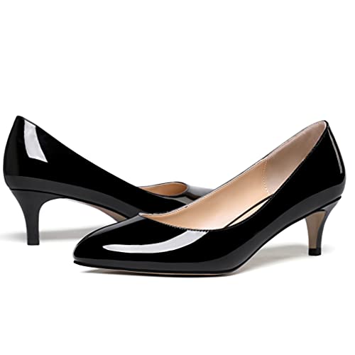 WAYDERNS Women's Cute Solid Slip On Round Toe Patent Leather Low Kitten Heel Pumps Shoes 2 Inch 5