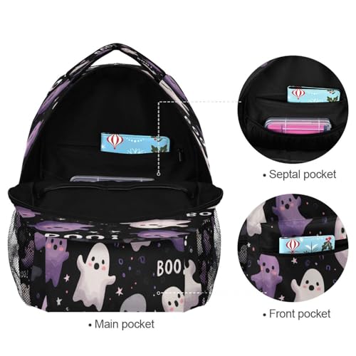 Dussdil Cute Ghosts Black Halloween Kids Backpack School Backpacks for Boys Girls 16 IN Book Back Pack Bag Casual Travel Daypack with Adjustable Shoulder Strap Zipper