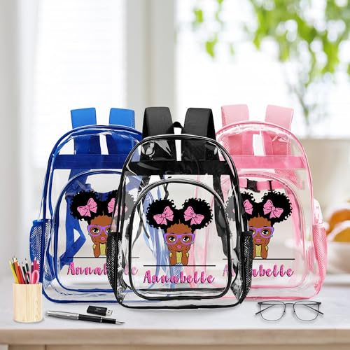 More information about Personalized School Clear Backpack for Girls with Name, Custom Kids Clear Backpack for Girls with PVC Waterproof Reinforced Strap & Large Capacity, Back to School Gifts for Kids