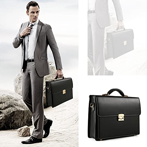Briefcases for Men Business Mens Leather Briefcase Locking Black Laptop Messenger Bag Lawyer Hard Case 6