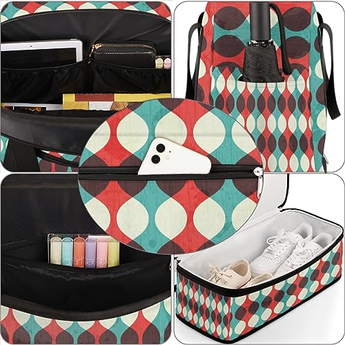 Sports Gym Bag Vintage Retro Geometric Foldable Travel Duffel Bag with Shoes Compartment Large Carry On Bag Weekend Yoga Workout Bag for Men Women 20.07 * 7.87 * 18.11 Inch 5