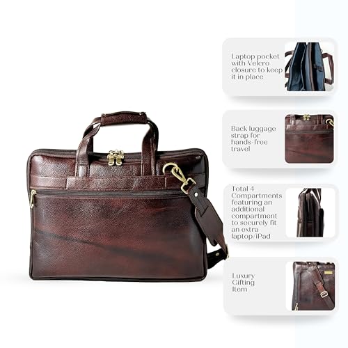 Premium Handmade Genuine Leather Briefcase 16 inch Laptop Compartment Adjustable Shoulder Strap Luggage Strap Briefcase Satchel Messenger Bag Leather Shoulder Bag 4