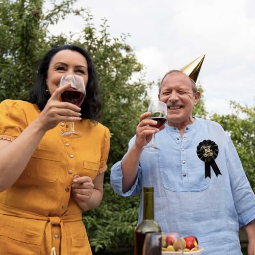 Why Choose WOWOPA Happy 50th Birthday Pin, Cheers to 50 Years Old Birthday Black Corsage Rosette Button Tinplate Badge Pin Party Decorations - 1Pcs?