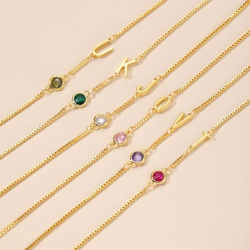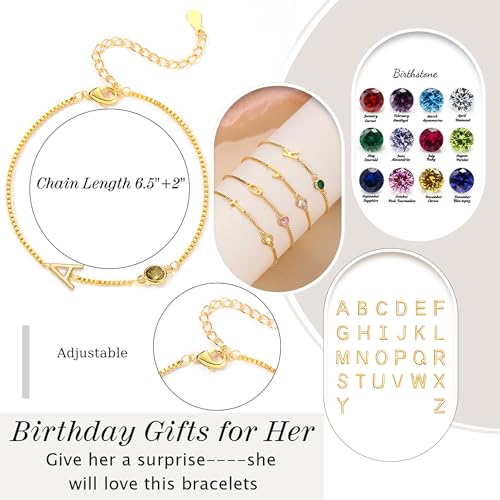 Birthstone Bracelets for Women Birthday Gifts for Teens Initial Bracelet Trendy Letter A-Z Dainty Gold Bracelet 21st 30th Mom Birthday Gift Birthstone Jewelry 7
