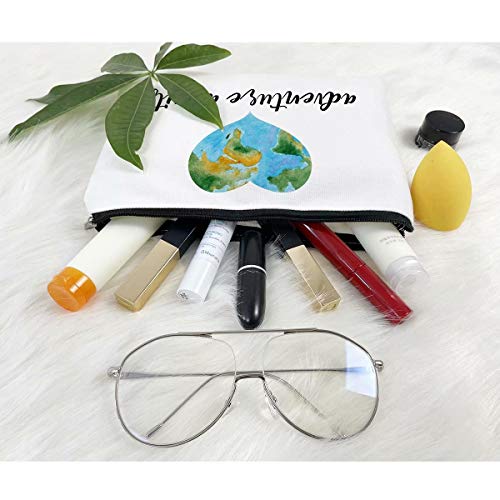 popular ! Travel Bag Adventure Awaits Cosmetic Bag Nature Linen Cotton World Map Makeup Case terrific Gift for Women Friends Bestie Daughter Graduation Friendship Birthday Gifts,10x7.5 Inch