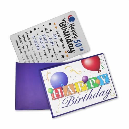 50th Birthday Gifts for Men -Happy 50th Birthday! Best wishes. 50 years, that is 600 months, 2607 weeks, 18259 days, 438216 hours. Behind you, all your memories. Before you, all your dreams. Around you, all who love you. Within you, all you needGifts for 50 Year Old Men - Men's 50th birthday gifts, 50th birthday decorations for grandpa, son, grandson, brother, nephew, uncle, dad or best friends, husband 50th birthday card50 Year Old Men Gift Ideas - 50th birthday cards for your family or friends. When receiving the greeting metal cards, they will feel the love of youHigh Quality Metal Wallet Insert Card. This small 50th birthday wallet card is made of Stainless Steel, lead-free, nickel-free. It's slim and lightweight design makes it easy to carry in a wallet or pocketBirthday Day Gifts for Men - Approximately the size of a credit card: 3.35Γ2.18Γ0.03, fits perfectly in any wallet. Envelope included, ready for gifts giving excellent for everyday use. supreme materials and excellent craftsmanship ensure long-lasting durability.