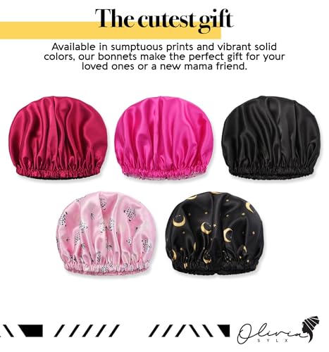 Brand: Olivia SylxColor: Hot Pink / Light PinkMaterial: SilkAge Range (Description): 4-8 YearsPattern: SolidGentle Protection: Our luxurious long filament satin bonnet for sleeping is designed to provide gentle protection for delicate hair, preventing tangles, frizz, and breakage during sleep. Great for people who want luscious shiny, smooth locs.Long filament silk satin: Crafted from high-quality long filament satin, our sleeping bonnets for women offers a smooth and soft surface that reduces friction, helping to maintain your child's natural hair moisture and shine.Snug, secure fit that won’t slip in the night: Our curly hair bonnet for sleeping is one size fits most. They feature a soft elasticated band that is fully adjustable. The adjustable satin bonnet will fit most head sizes and hair types, from afros and short braids to shoulder length curls.Vibrant and Cute Designs: Our bonnet for straight hair comes in a range of sumptuous colors and vibrant prints. After all, if you’re like us you won’t just wear these satin sleep bonnet at bedtime. Wear in the evening at home or before going out with the girls to give your hair a moisture lifting boost and shine.Double layered satin silk: Unlike other satin silk bonnet our night hair cap for women is double layered, giving ultimate smoothness and night time comfort. There isn’t a more indulgent and plush curly hair wrap for sleeping out there - we guarantee! Perfect for everyday use. first-class materials and excellent craftsmanship ensure long-lasting durability.