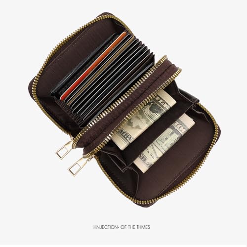 Credit Card Holder for Women Men,Retro Print Wallet with Double Zipper, Wallet Card Case,Business Accordion Wallets Gift 1