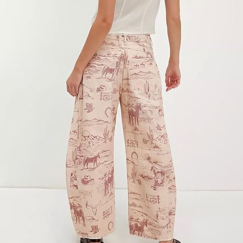 Barrel Jeans Women Floral Y2K Wide Leg Sweatpant Print Denim Boyfriend Baggy Low Rise Jeans 6